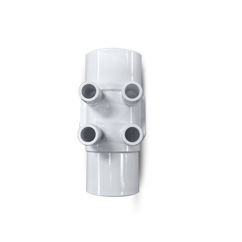 Denne manifold på 60 mm med 4 outputs er en essentiel komponent til spa- og VVS-systemer, hvor en jævn og effektiv fordeling af vandflow er nødvendig. Den sikrer optimal cirkulation og fordeling af vand til flere dyser eller afledninger.